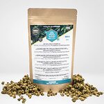 Mini Buds Cheese presenta pepitas compactas y densamente estructuradas con una vibrante coloración verde, acentuada por sutiles pelos anaranjados. Una generosa capa de brillantes tricomas refleja su potencia y calidad, destacando su rico contenido en CBD.