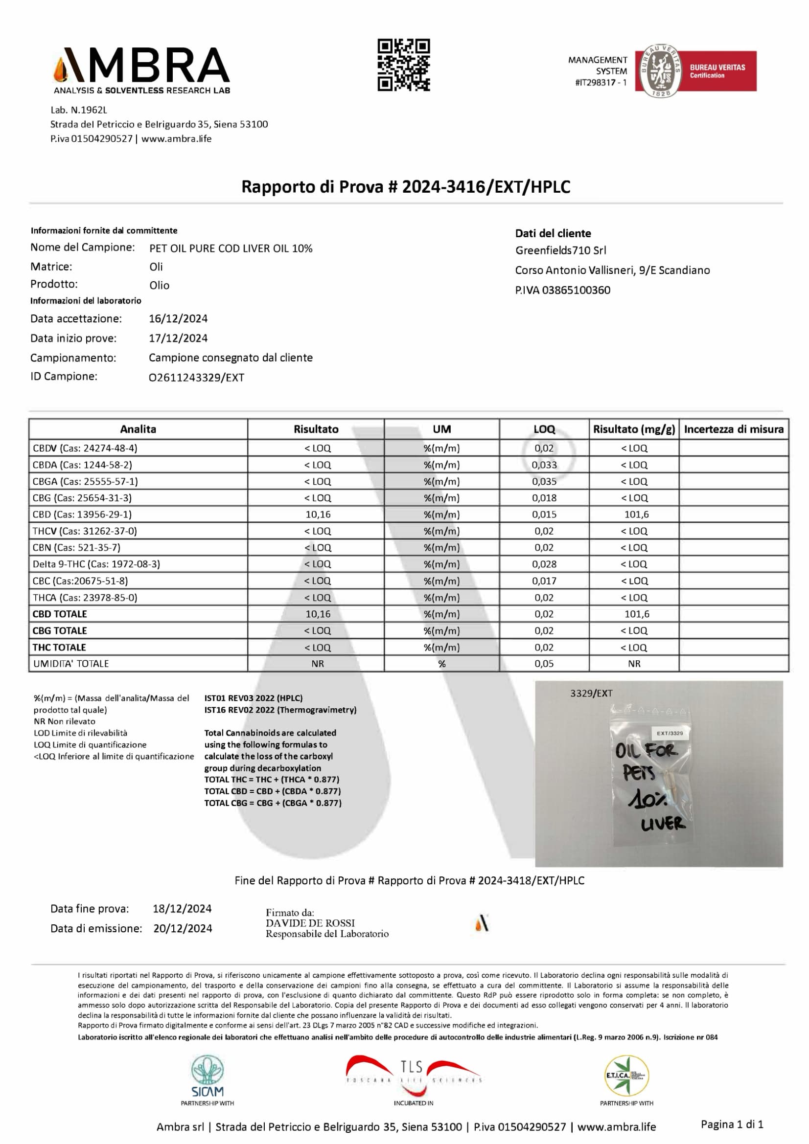 Olio al CBD 10% – for Pets – Olio di fegato di Merluzzo